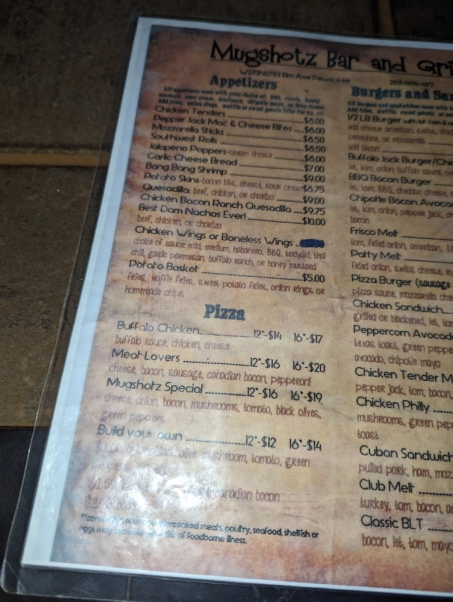 For pizza lovers, Mugshotz offers a range of options, from the spicy Buffalo Chicken Pizza to the loaded Meat Lovers Pizza. There’s something for everyone! Don’t miss their breakfast menu featuring the robust Hangover Skillet, designed to revive your spirits after a long night.